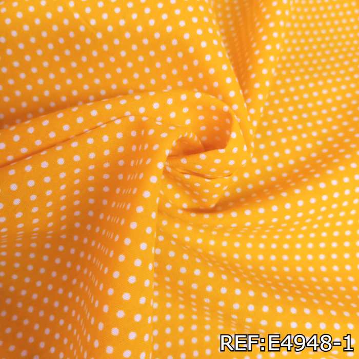 El Dacrón o sacrón en Puntos Pat – por metros – es un textil grueso y resistente, perfecto para confeccionar prendas y accesorios duraderos. Su estampado de puntos pequeños, del tamaño de 2mm con una distancia entre puntos de 5mm, le da un toque divertido y juvenil. Esta tela es fácil de trabajar y tiene una excelente caída, lo que la hace ideal para una amplia variedad de proyectos de costura.