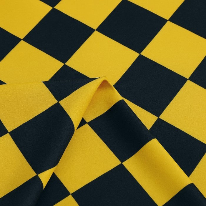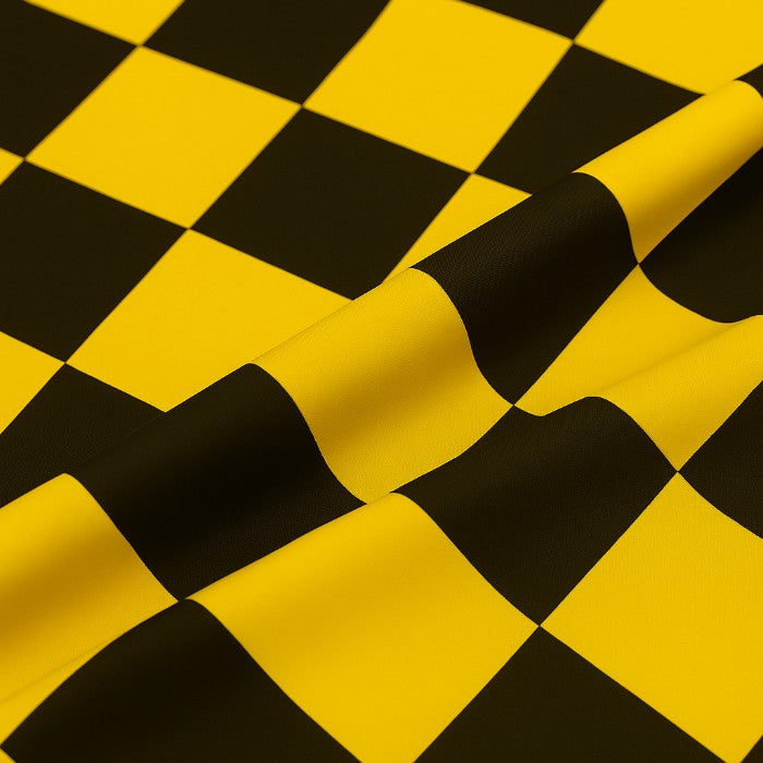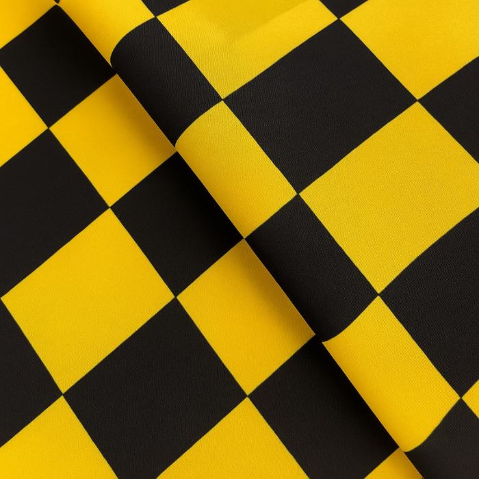 La tela Bandera de Parqueadero o Estacionamiento – por metros – es un textil rígido, liso, impermeable y de alta visibilidad. Está diseñada con cuadros de 10 x 10 cm en colores amarillo y negro, que aportan contraste visual inmediato, facilitando su uso como señalización o decoración temática. Gracias a su estructura firme y materiales de alta calidad, esta tela ofrece gran durabilidad y resistencia al desgaste, incluso en exteriores o zonas de alto tránsito.