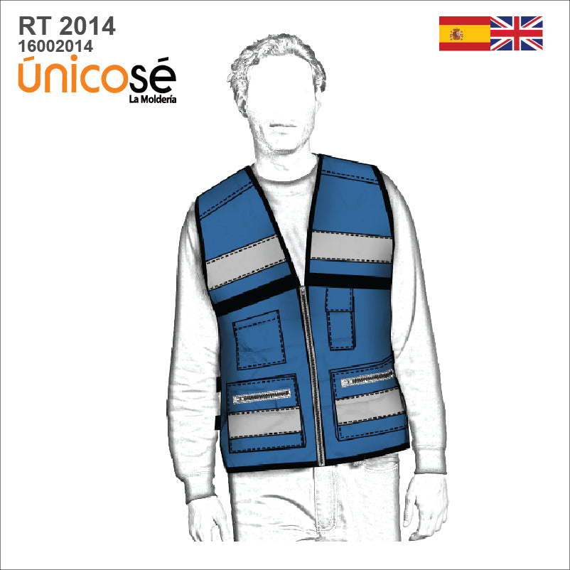 -CREMALLERA CIERRE DESMONTABLE(1) en delantero-CREMALLERAS CIERRES(3) en bolsillos -CINTA REFLECTANTE 5cms ancho-CINTA POLIESTER 2,5cms ancho-HEBILLAS PLASTICO (4)-VELCRO 2cms ancho