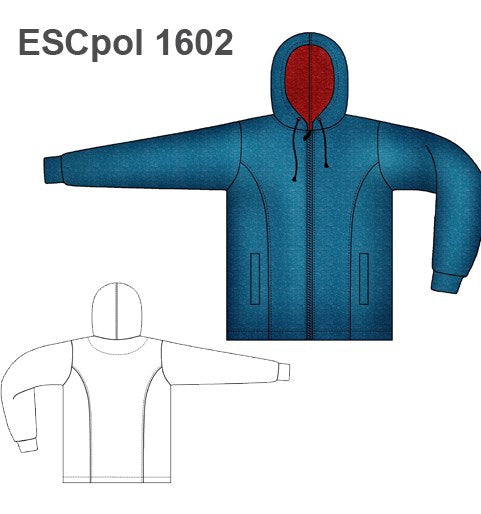CREMALLERA CIERRE DESMONTABLE(1) en centro delantero/CORDON ELASTICO(2) en capuchon gorro y en basta ruedo/PASADORES(3)/OJETILLOS(4)