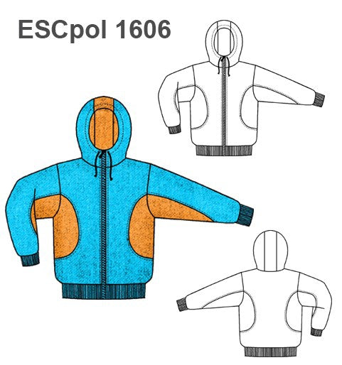 CREMALLERA CIERRE(1) en centro delantero/OJETILLOS(2) L.20 aprox/CORDON en gorro