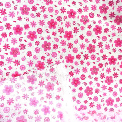 El Dacrón en Flores Wilmez Fondo Blanco o sacron – por metros – es un textil grueso y resistente, con flores escarchadas medianas de 1cm de tamaño. La distancia entre ellas es de 1cm – 3cm, lo que le da un aspecto delicado y elegante. ¡Dale un toque floral a tus creaciones con nuestra tela Dacrón Flores Wilmez!