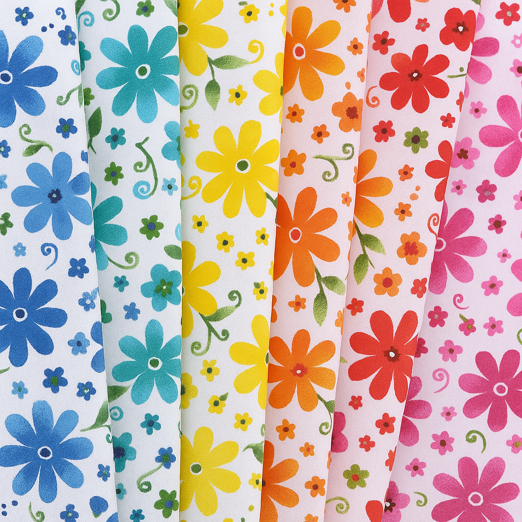 La tela Dacron Flor Leroy o sacron- por metros – es un textil grueso y resistente con flores grandes de tamaño 5 cm y una distancia entre ellas de 1cm – 3cm. Además, esta tela es fácil de manejar y se puede trabajar en diversos proyectos de costura y manualidades.