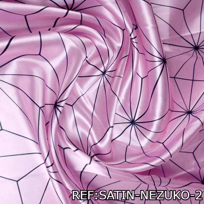 La tela del Disfraz de Nezuko Kamado, del popular anime Demon Slayer o Asesino de Demonios – por metros – es un textil verdaderamente impresionante. Su brillo cautivador, rigidez y resistencia hacen que sea perfecta para recrear este icónico personaje. El color rosado vibrante de la tela resalta, mientras que los pentágonos con bordes negros le dan un toque distintivo y auténtico.