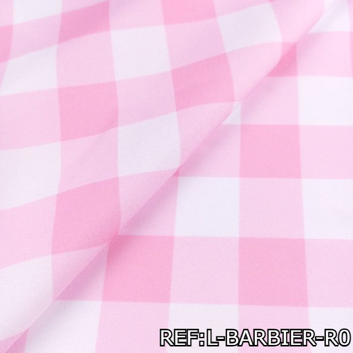 La tela para el disfraz del vestido de Barbie de la película - por metros – es un textil para crear un atuendo deslumbrante. Esta tela es reconocida por ser pesada, rígida y resistente, lo que brinda la estructura ideal para el vestido. Su superficie presenta un encantador estampado de cuadros en tonos rosados y blancos, añadiendo un toque de elegancia y estilo al diseño.
