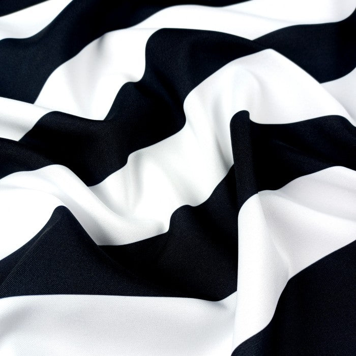 La Tela del Disfraz de Beetlejuice - por metros - es un textil que combina una superficie lisa y suave con un diseño estampado de líneas verticales en blanco y negro. Su rigidez y resistencia aseguran que el disfraz mantenga su estructura y forma, ideal para quienes buscan un acabado profesional y duradero en sus proyectos de costura o decoración.