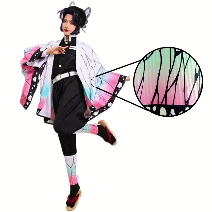 Además de sus características distintivas, esta tela ofrece una calidad superior que la hace perfecta para proyectos que exigen un toque especial. Su suavidad y resistencia la convierten en la elección ideal para confeccionar trajes auténticos de Shinobu Kocho. Aquí hay algunos usos populares para inspirarte: