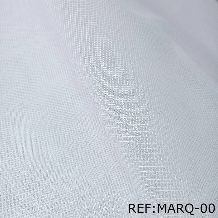 La tela Marquiset – por rollo – también llamada marquisette o mosquitero, es un textil rígido, engomado y liviano con agujeros por toda su superficie. Con una anchura de 280 centímetros, es sublimable, lo que significa que puede imprimirse con diseños personalizados para darle un toque único.