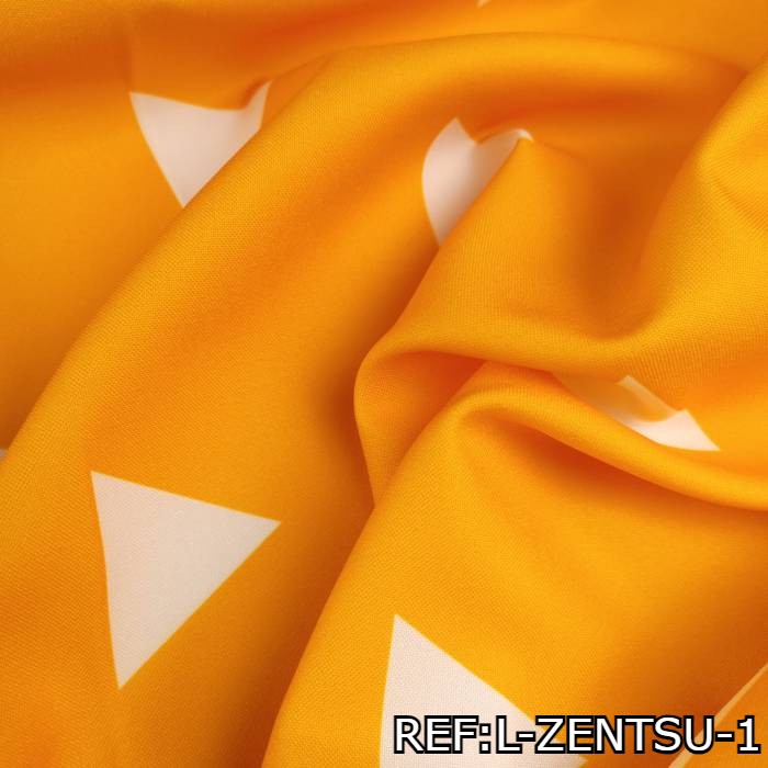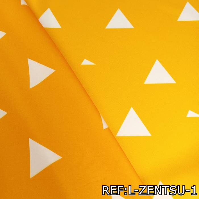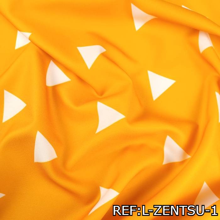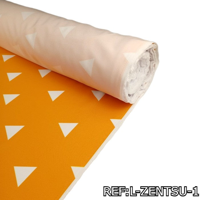 La Tela del Disfraz de Zenitsu Agatsuma de Demon Slayer o Asesino de Demonios - por rollo - es un textil resistente, duradero y ofrece una estructura rígida. Con su distintivo color naranja y patrón de triángulos blancos, esta tela te permite recrear el atuendo característico de Zenitsu Agatsuma con autenticidad y estilo.