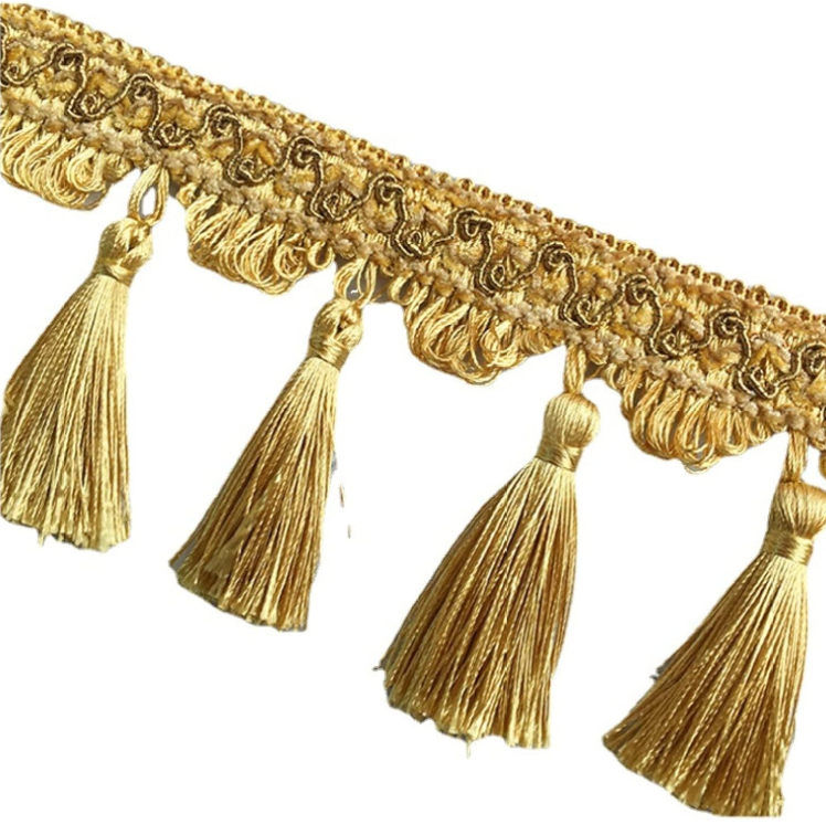 Los Flecos de Cortinas son un accesorio decorativo diseñado para aportar elegancia y un acabado clásico a cortinas y textiles decorativos. Su uso realza la presentación final, brindando un detalle ornamental ideal para proyectos de decoración interior.