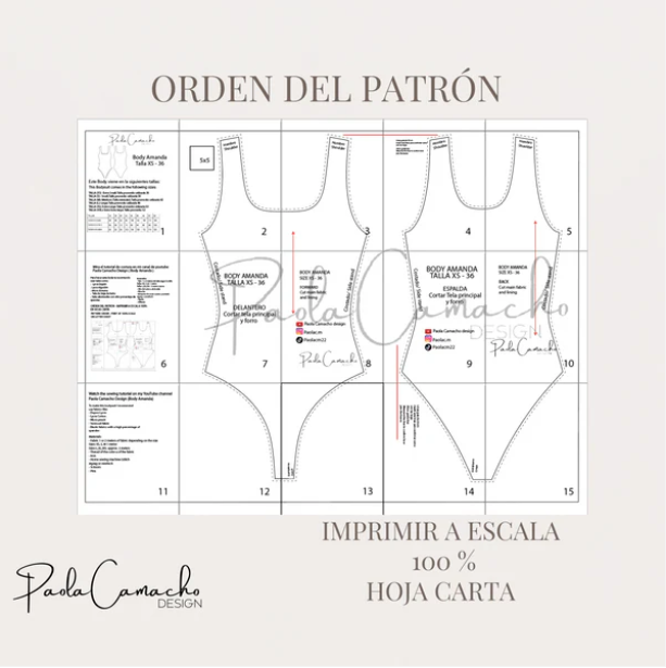 Molde de Body Amanda en PDF - Tallas XS,S,M,L,XL,XXL