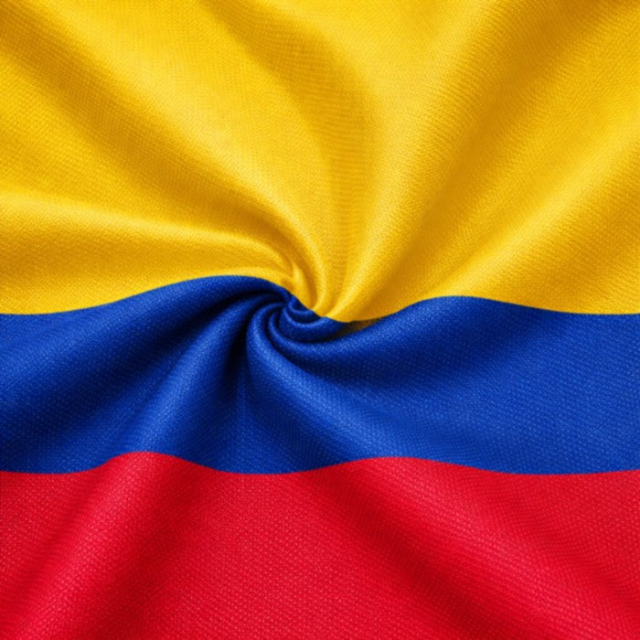 La Tela Bandera Tricot Colombia de 150 cm de ancho - por rollo - es un textil rígido, resistente y durable, ideal para la elaboración de banderas y elementos representativos. Cuenta con un ancho de 150 cm y un acabado semi brillante que realza los colores, ofreciendo una excelente presentación visual y buena estructura para proyectos que requieren firmeza y larga duración.